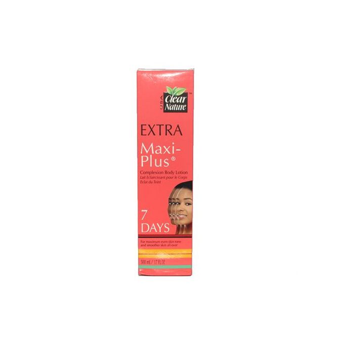 Achieve lighter, fairer skin in just 7 days with Clear Nature Extra Maxi Plus Body Lotion. Fades dark pigmentation, gradually brightens the skin. Eliminates dry and dull spots on the skin caused by the accumulation of melanin and high pigmentation.For best results, apply twice daily with clear nature oil.